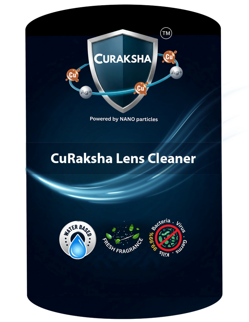 Experience unparalleled clarity and hygiene with CuRaksha Lens Cleaner, the high-efficiency liquid designed for all your optical and electronic lenses. Powered by advanced nano copper technology, this innovative cleaner is suitable for **glass, polycarbonate, and camera lenses**, providing a streak-free shine while effectively killing **99.9% of germs in just 60 seconds**, including bacteria, viruses, and fungi. It leaves surfaces antimicrobial, is **environmental-friendly, non-toxic, and NABL accredited**, making it a safe and cost-effective choice for maintaining your valuable optics.